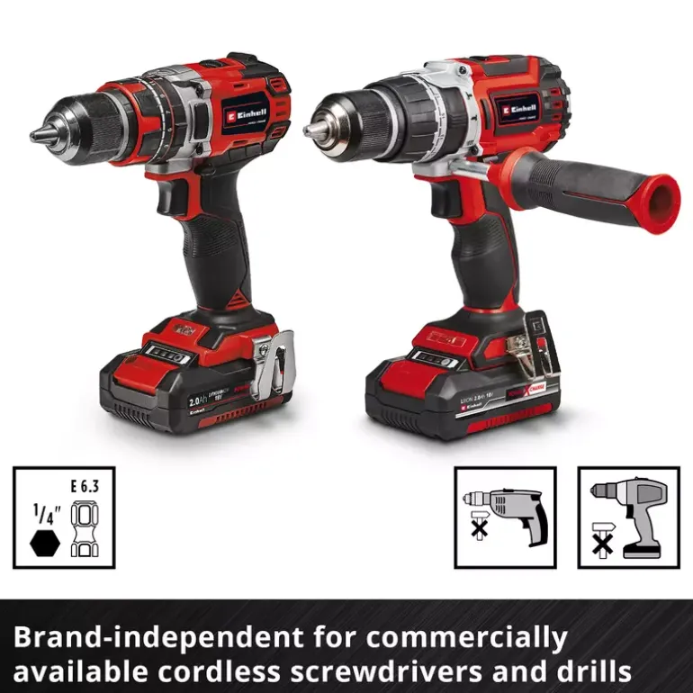 - With E 6.3 shank for standard cordless screwdrivers and drills