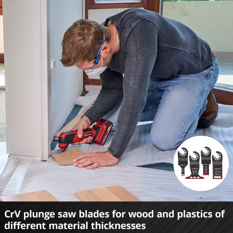 - 3x bimetal plunge saw blades (44 / 32 / 20 mm) with 18 TPI